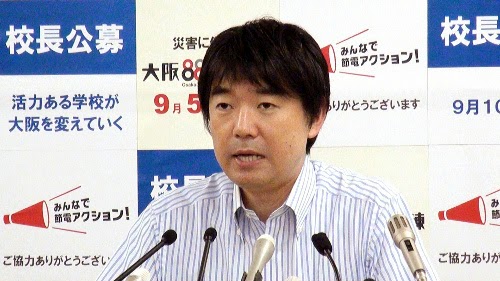 2008年初38歲的橋下當選大阪府知事。他是律師,也是政論節目名嘴。大阪府及市的財政狀況都很糟糕,橋下就任後首要任務就是讓財務健全化。他向府內同仁說:「大阪府現在是破產狀態。公司破產,就算薪水減半也要接受。」在官僚文化下,橋下直視現實的作風引起很大的話題。這讓我想起94年的阿扁,在極度封閉老舊、金錢使用方面又亂七八糟的氣氛下講出正常人該講的話,有點狂暴,無禮,具有煽動性的言詞,讓人感受到改革的氣勢,但又伴隨著不安。
